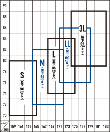 가랑이 사이는 가랑이에서 발뒤꿈치까지의 길이를 기준으로 합니다.